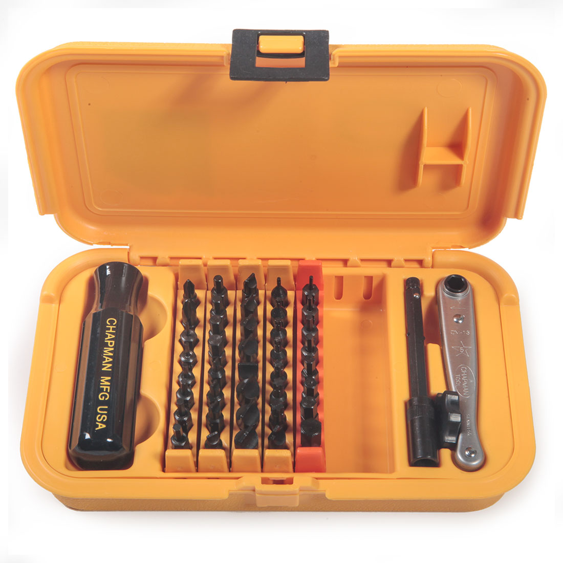 This Chapman Tool Set comprises of 44 Pieces. Including 40 bits of a combination of Phillips, Metric & SAE Hex, Torx and Slotted bits.