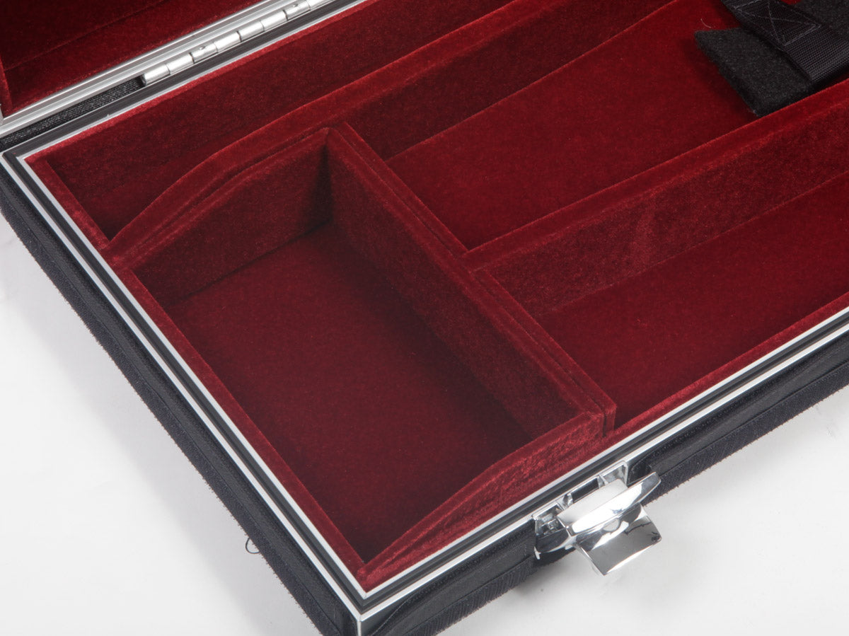The case is in new condition. It has a combination lock and two further lockable catch locks either side. The case is lined with red velvet like material to keep the contents secure and protected from scratches. This particular case has Krieghoff embroidered on the inside of the lid in gold. This case is fitted with a Cordura Cover for added protection.