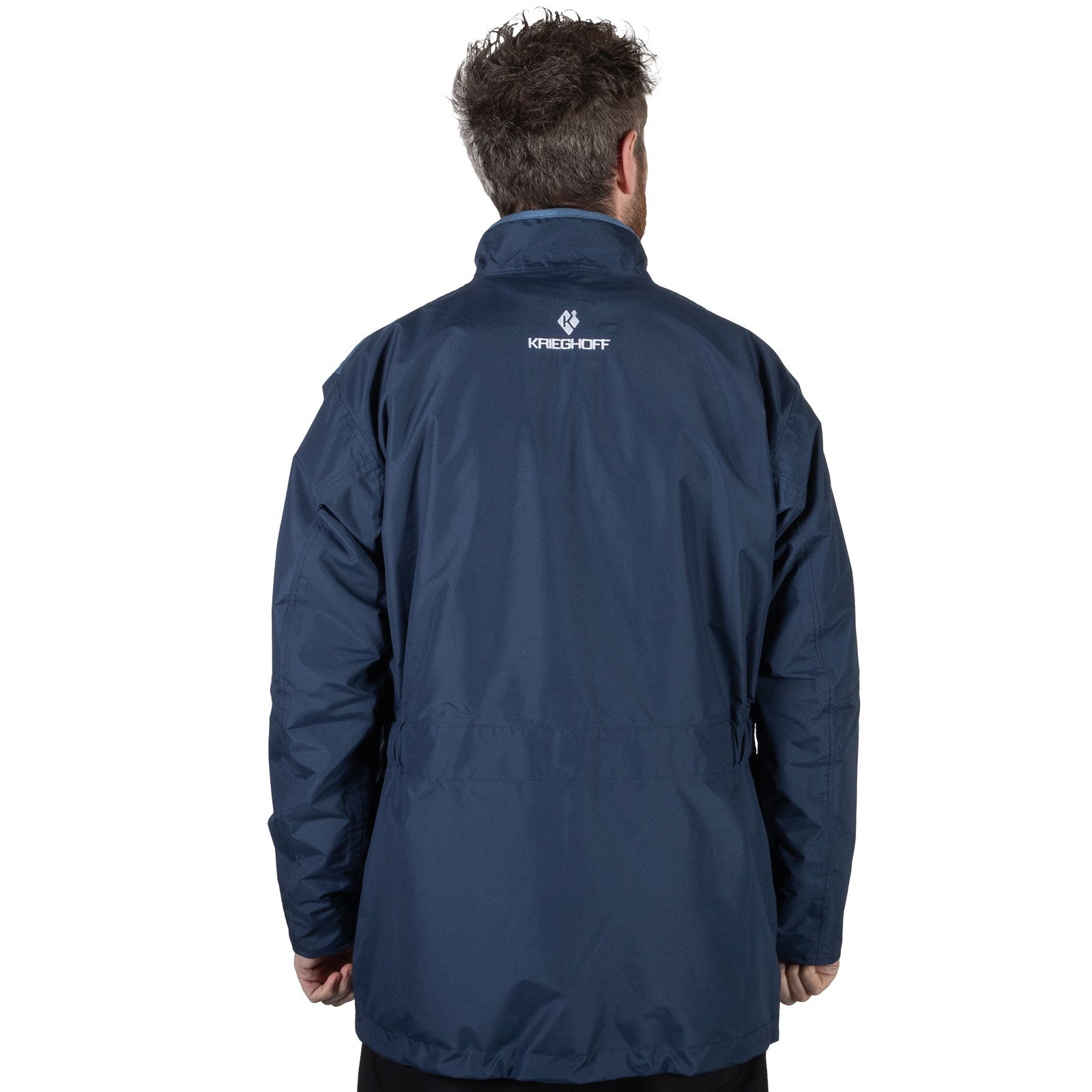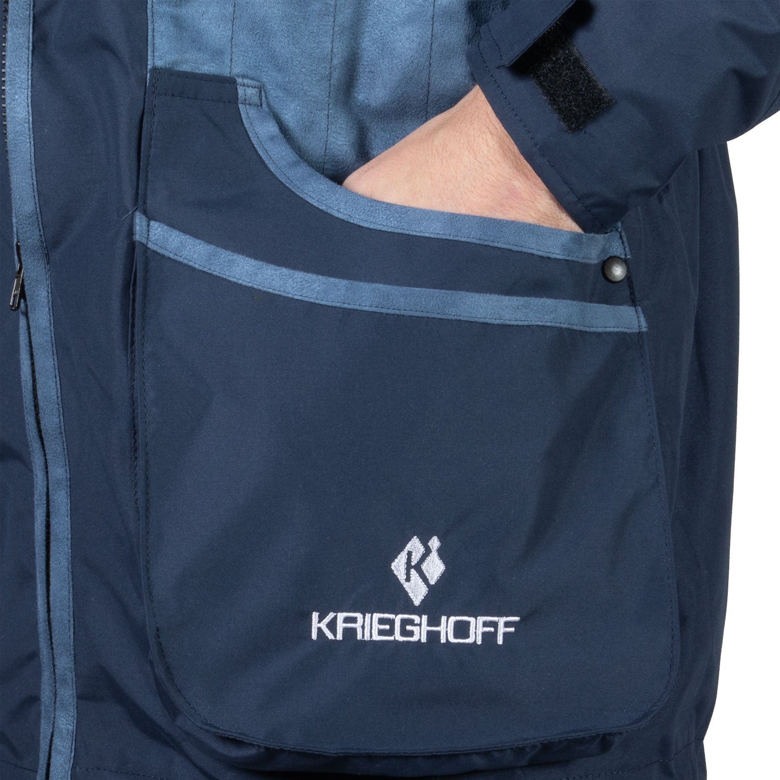 The Krieghoff Logos in white on the left shell pocket, the rear nape of the neck and right-hand sleeve stands out against the dark navy colour running throughout the vest. Produced EXCLUSIVELY for Krieghoff. Made in the UK by Leon Grant Ltd.