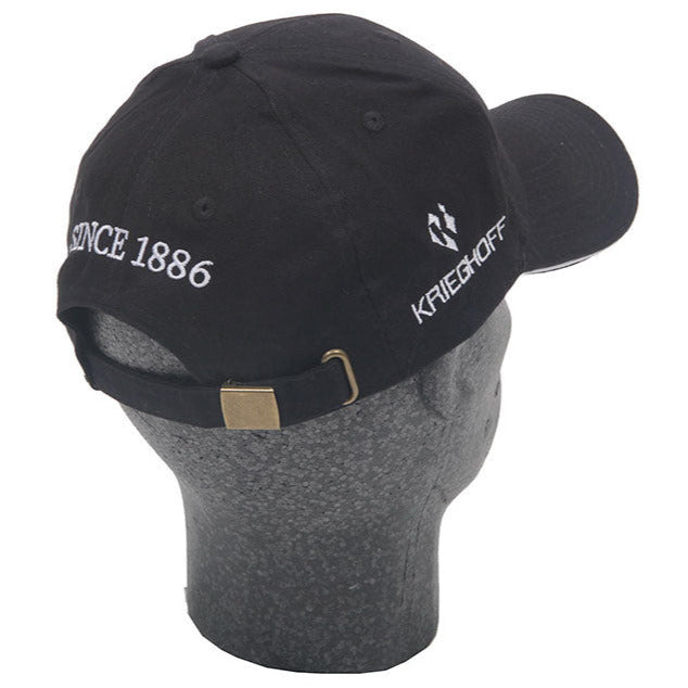Navy/White or Black/White Cap with high quality White detailing on the peak and White embroidery. The Krieghoff "K" Logo on front in bold White embroidery. Krieghoff Logo on the right side of the cap and the "Since 1886" logo on the rear.