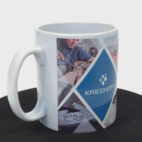 This custom designed Krieghoff mug is part of a Series of 3 mugs available. Each mug is the series has a unique design featuring Krieghoff shooting scenes and imagery in a diamond style montage pattern.