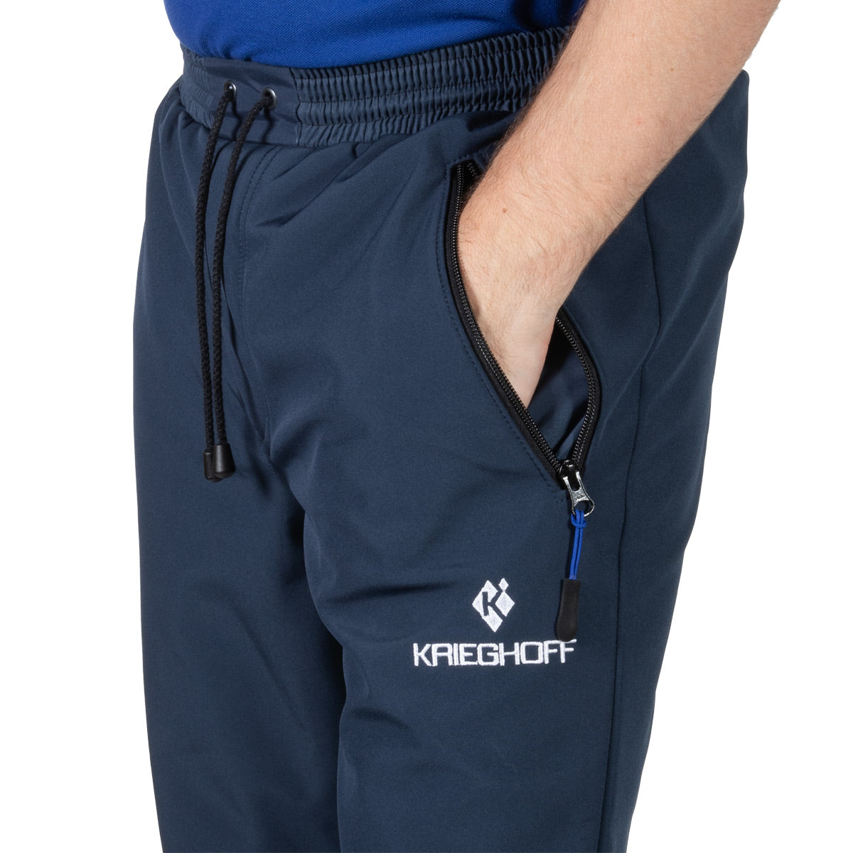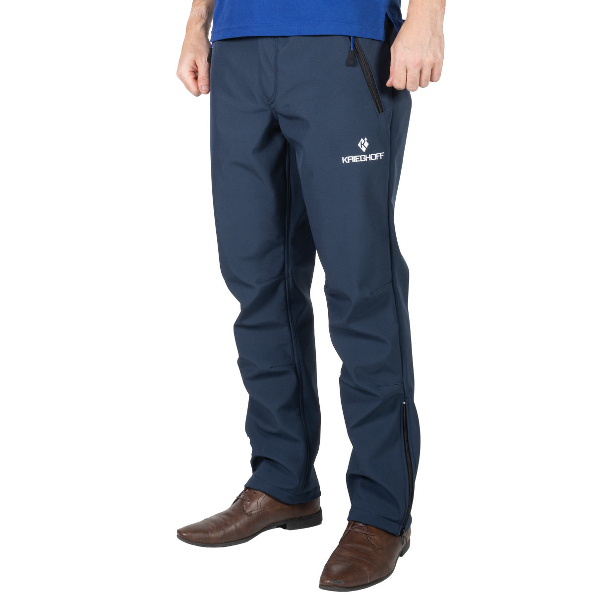 With the Krieghoff logo embroidered in white on the left side below the pocket and the Krieghoff diamond logo on the lower right leg.