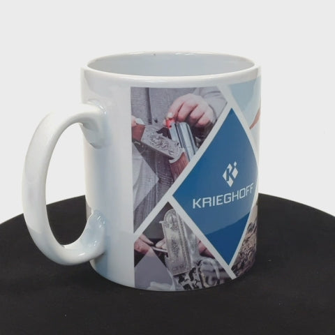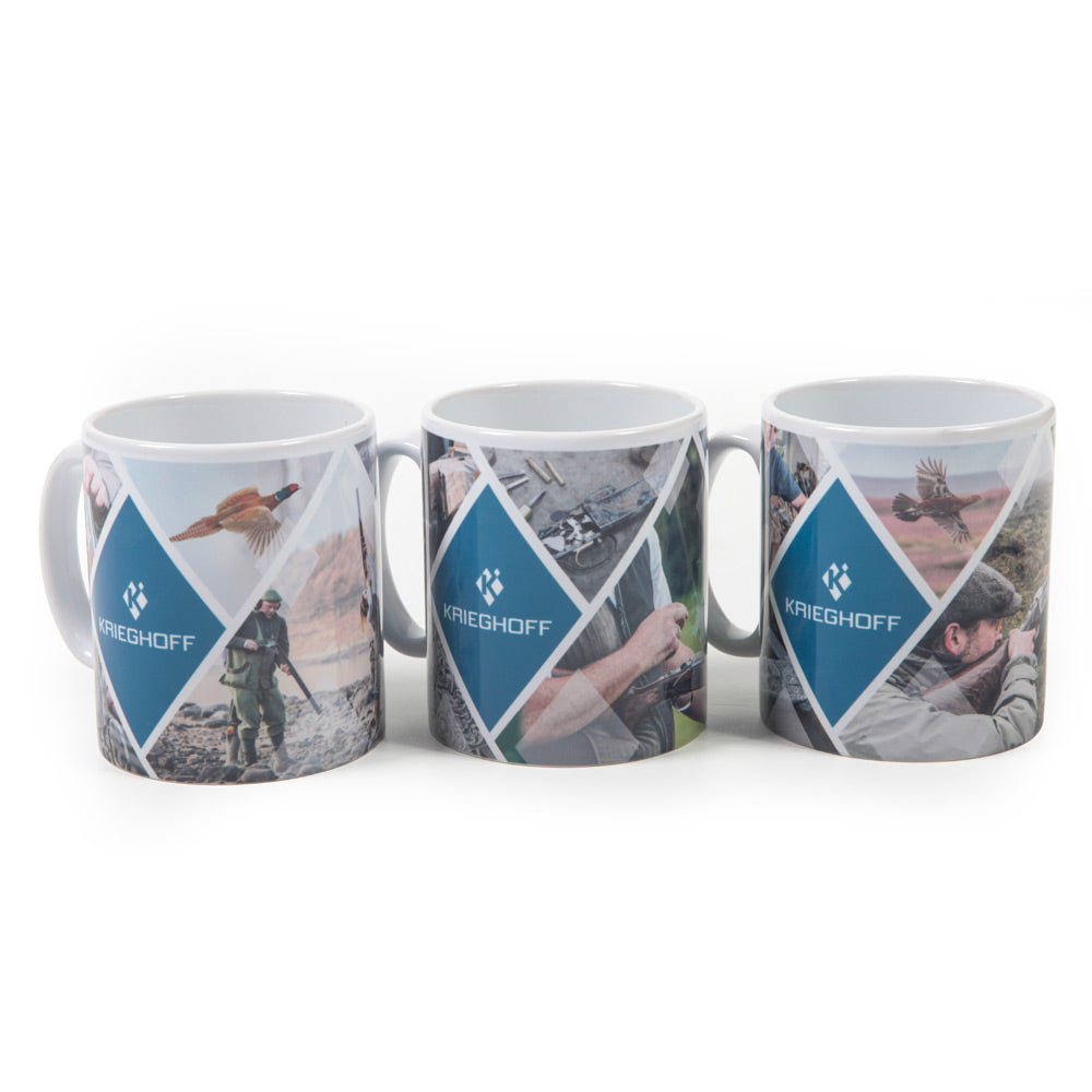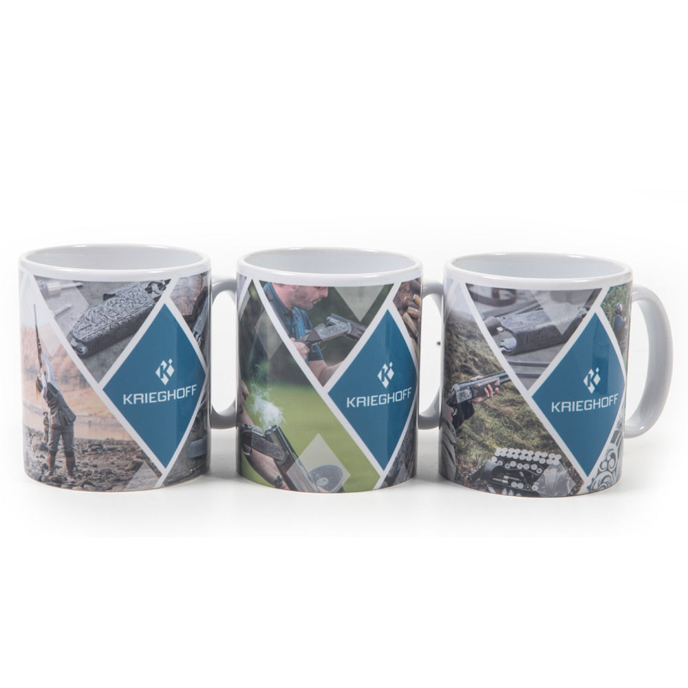 This custom designed Krieghoff mug is part of a Series of 3 mugs available. Each mug is the series has a unique design featuring Krieghoff shooting scenes and imagery in a diamond style montage pattern.